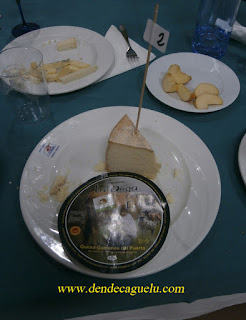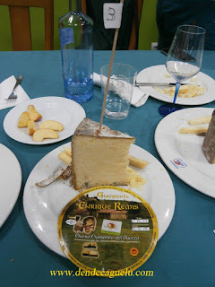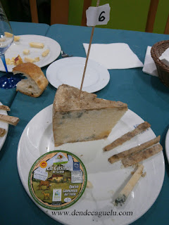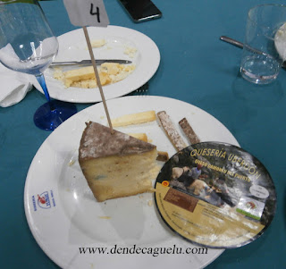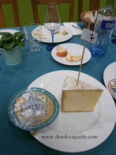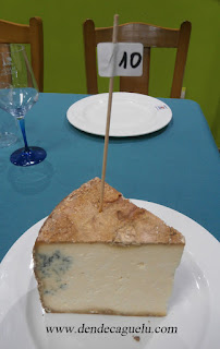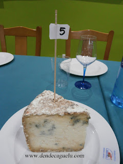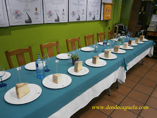 línea los quesos a catar, uno por quesería ofertada, se encontraban cortados en