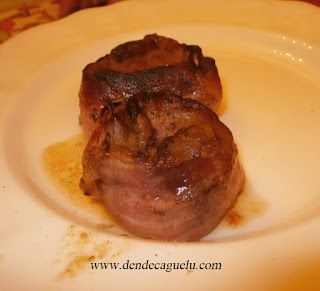 unos sabrosos medallones de solomillo de jabalí albardados con tocino ibérico y